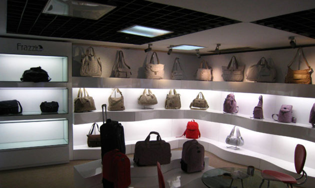 箱包店对于灯光的消耗是非常大的,一般会花费很高的电费,可千万不要心疼那点电费。灯光对于箱包的衬托作用是非常大的,它可以将包包的没展现的淋漓尽致。箱包店对于灯光,要结合光暗衬托来突出箱包的风采,在橱窗的箱包最好采用射灯烘托氛围。